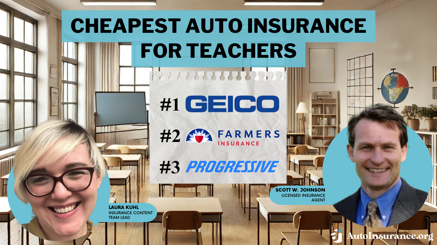 13,283 reviewsGeico, Farmers, and Progressive have the cheapest auto insurance for teachers. However, our top pick for the cheapest teachers car insurance is Geico, averaging $70/mo for minimum coverage.